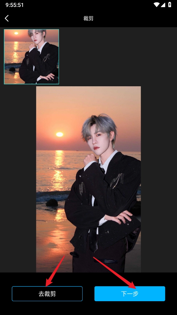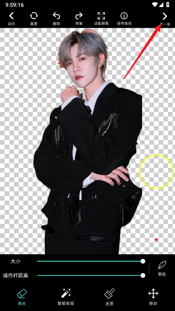 在一键抠图界面上传需要精修的图片后,你可以手动裁剪掉不需要的部分,操作完成后点击“下一步”按钮即可。