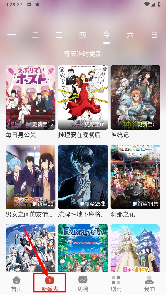 在"新番表"中,可以快速捕捉每天更新的最新剧集。