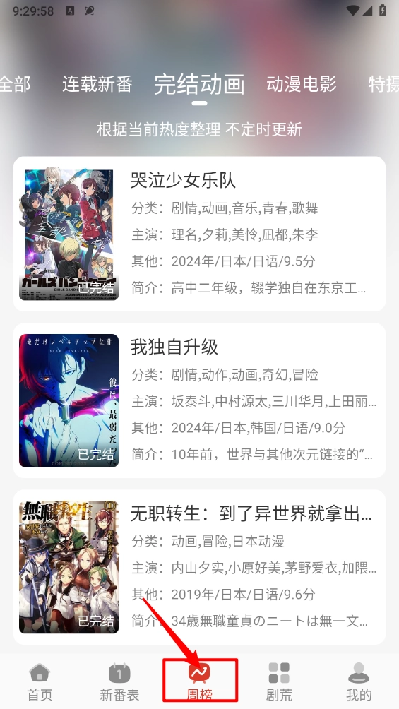 然后在周榜页面根据榜单信息进行选择观看。