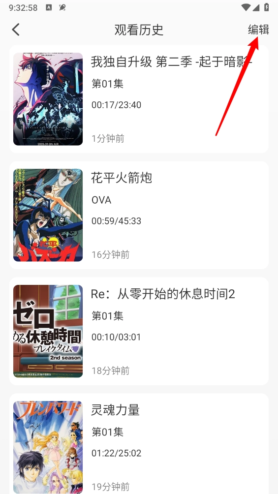在观看历史页面点击右上角"编辑"按钮。