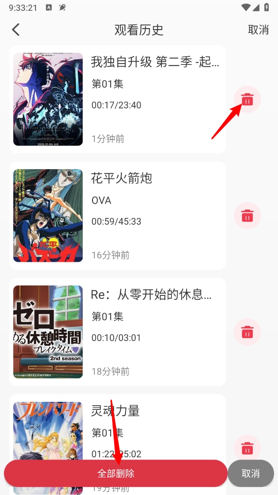最后点击“全部删除”按钮,或者单独点击右侧对应的“删除”图标,就能完成删除操作了。