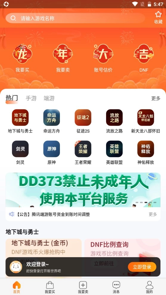 DD373是专门为游戏玩家打造的平台,致力于为大家提供安全且便捷的游戏币、点卡、元宝、装备、账号以及代练等交易场景。平台配备了寄售、担保、求购等多种交易模式,以此来适配不同用户的各类需求。不管您的身份是买家还是卖家,都可以在DD373平台上获得令自己满意的服务。