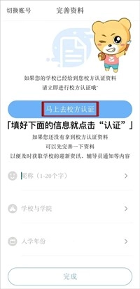 打开易班开始完善资料,点击【马上去校方认证】。