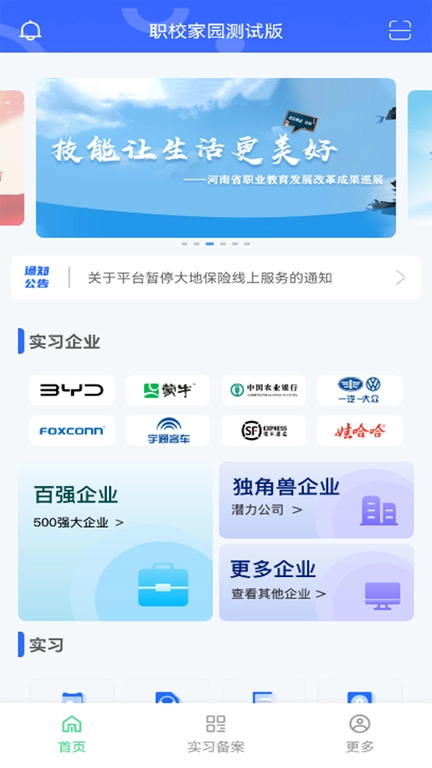 职校家园是专为职校学生打造的实习服务平台,用户可在平台上便捷查询个人实习时长;平台汇聚了众多不同行业的合作企业,助力学生快速匹配到合适的实习岗位,获取更多实习机会;教师也能通过平台实时了解班级学生的实习进展,实现实习过程的智能化管理;此外,平台还为用户提供丰富的技能培训资源,全方位支持职校学生的实习与成长。