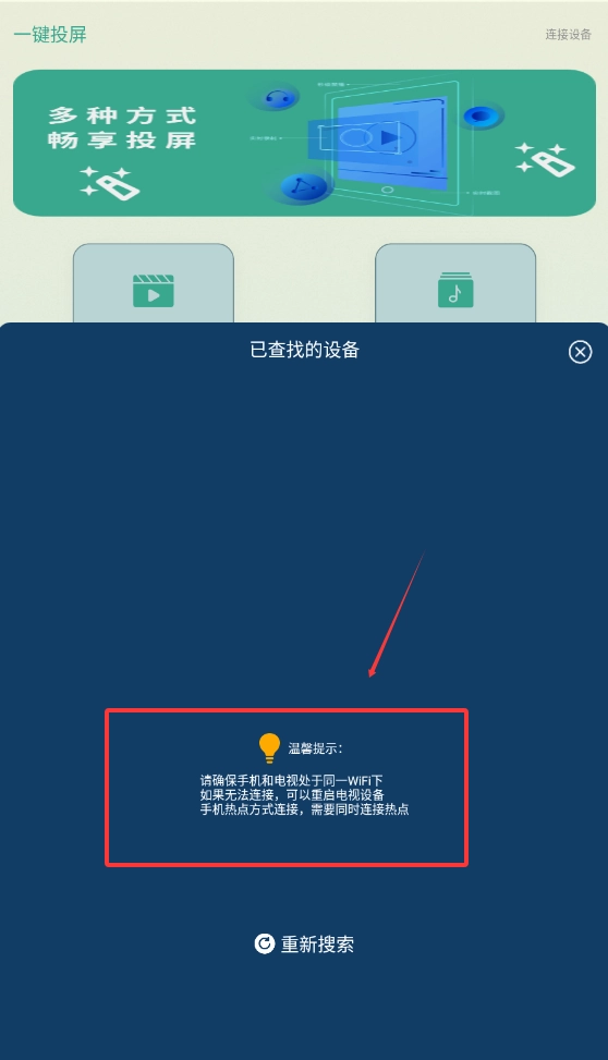 在投屏界面中,您可以添加自己的手机型号,从而投屏查看手机里的视频和照片,只需点击进入就能实现。
