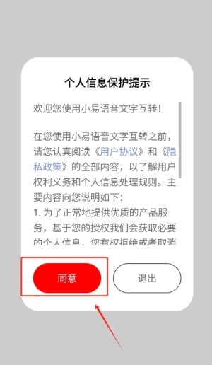 首先点击同意按钮,顺利进入应用界面,开启便捷的语言转换功能体验,踏上全新的学习之旅。