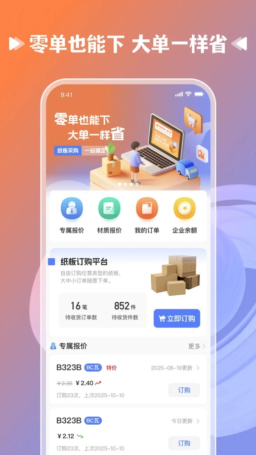 平台提供详尽的纸板产品信息,您可依据自身需求挑选合适的纸板产品,再填写好采购数量、交货日期等相关信息,就能便捷地完成订单创建。