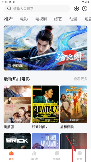打开影视类应用,点击页面底部的“我的”选项,进入个人中心页面。