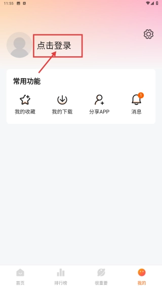 在个人页面,点击点击登录选项,进入登录界面。