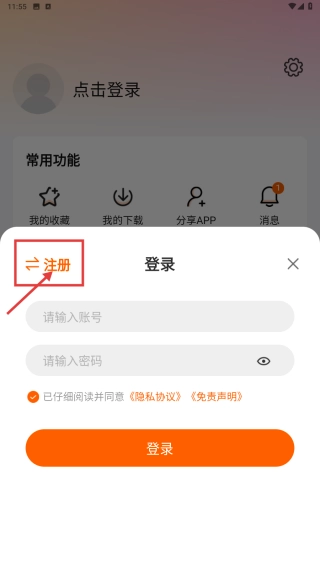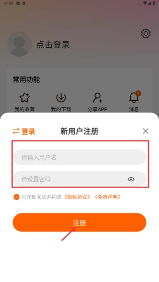 请先填写用户名与密码,接着勾选“已仔细阅读并同意隐私协议及免责声明”这一选项,之后点击注册按钮,即可完成账号的注册流程。