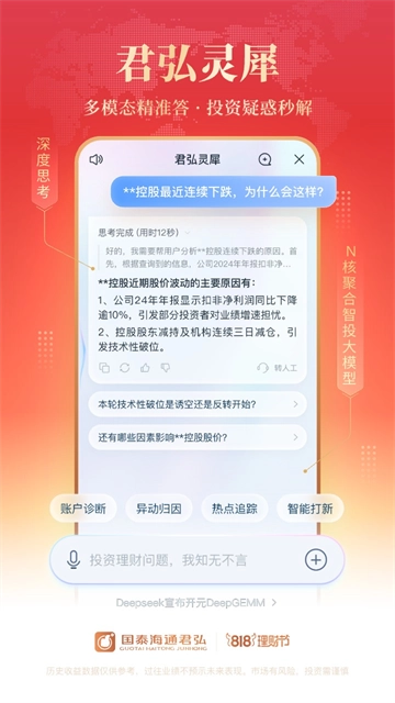 国泰君安君弘依托深厚的金融服务积淀、完备的功能矩阵以及智能化的服务体系,在股票投资与金融理财领域树立起优质软件的标杆。对于渴望便捷开户的用户、寻求入门指引的炒股新人,或是期待摆脱盯盘束缚的投资者而言,其提供的零元极速开户通道、专业知识辅导课程以及AI智能盯盘工具等,都能精准契合不同群体的需求。
