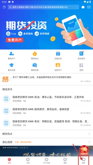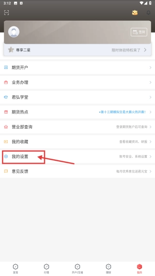 打开期货投资类应用,点击底部“我的”选项,进入个人中心页面。