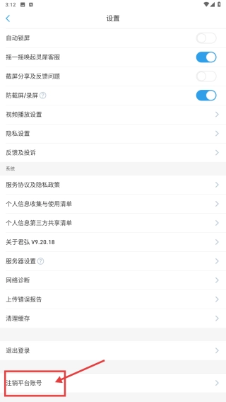 在设置页面中,选择“注销平台账号”这一选项后,系统会弹出包含重要提示信息的对话框。