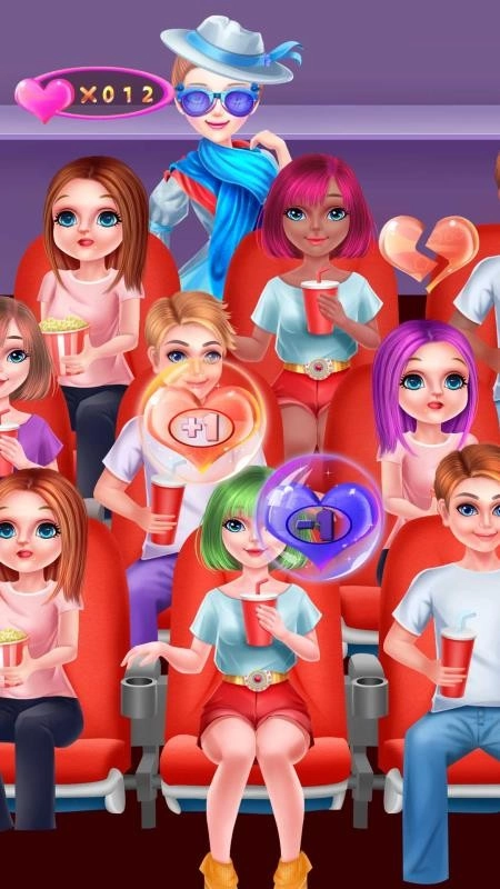 可以自定义为女孩进行装扮,让她前往电影院观影,欣赏震撼的影视作品。