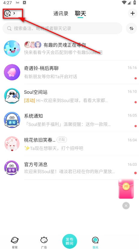在Soul的主页顶部或者底部的导航栏里,找到那个放大镜样式的图标,点击它就能进入搜索页面了。