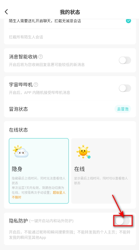 开启隐私防护