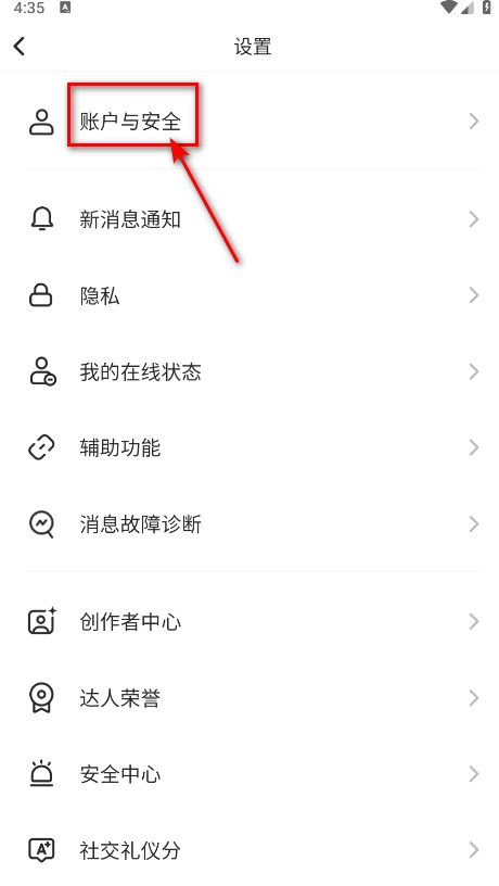 点击账户与安全