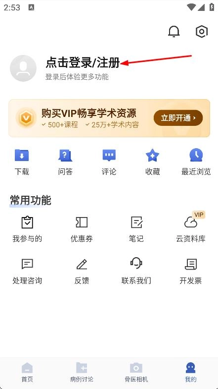 在唯医骨科首页,点击底部我的,进入个人页面。