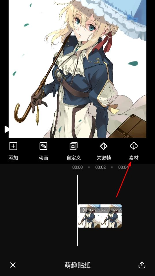 进入编辑页面后,若需要添加更多素材,点击素材按钮即可。