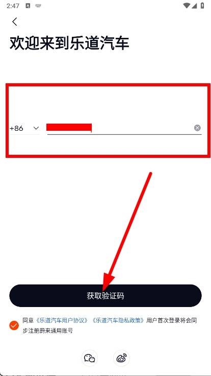 进入登录页面,输入手机号,点击获取验证码。