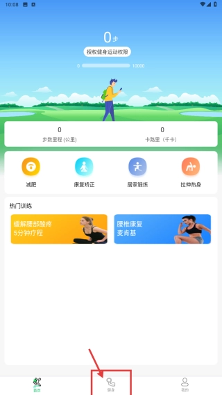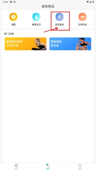 打开健身类应用后,点击底部的健身选项,即可进入健身精选页面。