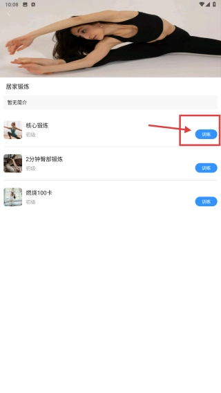 在居家训练课程列表里,找到核心训练这一项,点击进入课程详情页面。