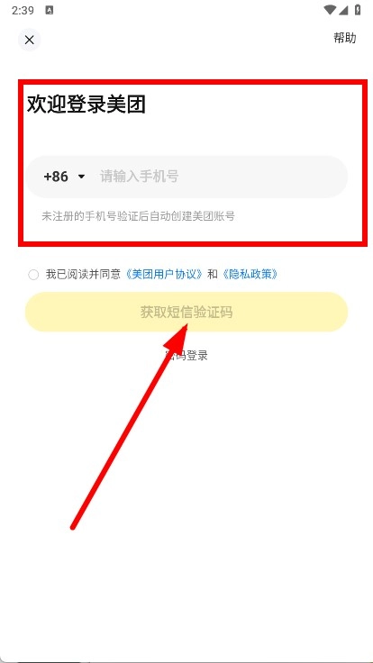 在登录界面,输入手机号码,点击获取短信验证码,按照提示完成登录或者注册的相关操作。