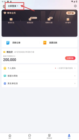 在个人中心页面,点击“立即登录”区域,即可进入登录界面。