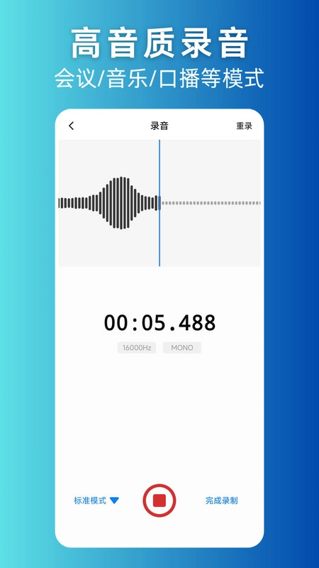 支持标准会议模式、音乐模式、口播模式的录音功能,44100赫兹的采样率可确保高品质的音频录制效果。