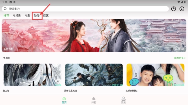 打开影视类应用,点击动漫分类选项,进入动漫分类页面。