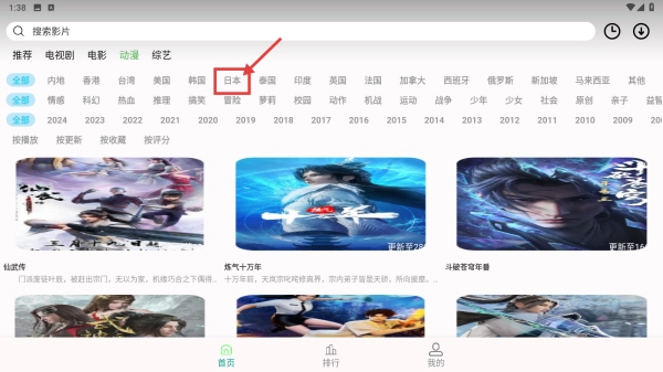 在动漫分类页面,选择日本区域的选项,即可筛选出日本动漫的列表。