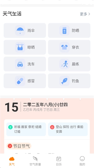 全场景生活指数覆盖范围十分广泛,除了基础的生活建议外,像钓鱼、晾晒、晨练这类细分场景的指数也都包含在内,能够很好地贴合人们日常生活中的各类需求。