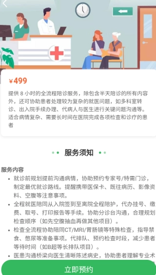 服务内容相当完备,除了陪同就医外,还可帮忙代取药品与检查报告,既能为用户节省宝贵的时间,又能减轻精力消耗,提供覆盖各方面的陪护支持。