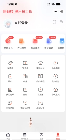 轻触成长界面,寻找实习信息。