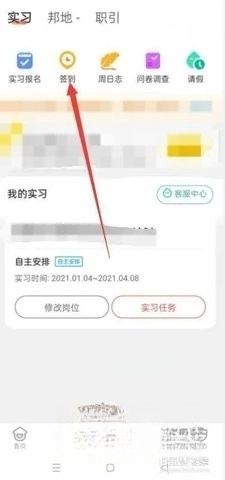接下来进入个人中心或者实习管理页面,找到需要办理异地签到的岗位。