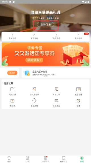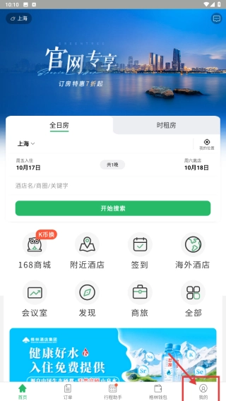 打开酒店预订类应用,点击底部“我的”选项,进入个人中心页面。