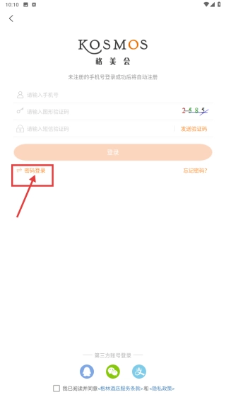 在账号密码输入界面,依次输入手机号与密码,随后点击登录按钮,即可完成账号登录操作。