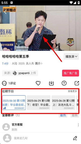在综艺播放页面,既能观看综艺内容,也能查看往期节目等相关信息。