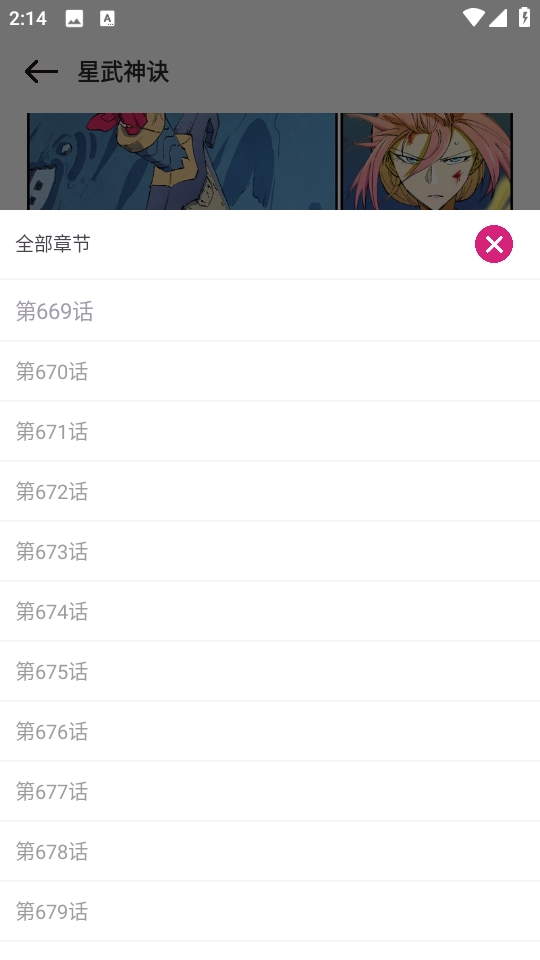 阅读界面,可以直接查看这部漫画的全部目录内容