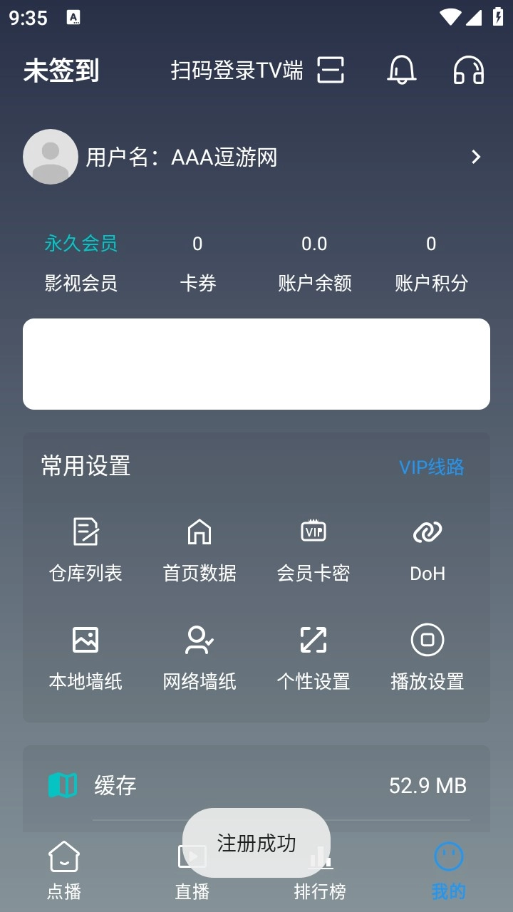 点击右下角我的,进入个人页面