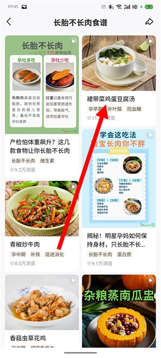 在长胎不长肉的食谱列表里,点击你想查看的那道食谱的内容。