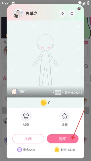 在单品详情页面,点击购买,即可购买该装扮单品。