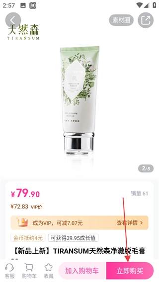 在天然森品牌的商品列表页面,挑选心仪的商品并进入其详情页。
