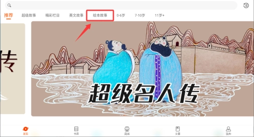 进入首页后,点击“绘本故事”分类入口,即可进入绘本专区界面。
