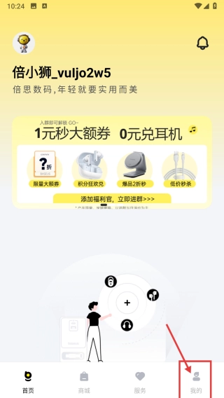 打开数码服务类首页后,点击页面底部的“我的”选项,即可进入个人中心页面。