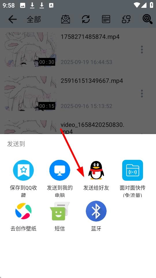 点击【发送给好友】可将视频通过QQ发送给好友。