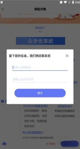 若您确定要购买课程,可点击下方的【购买课程】按钮,填写您的真实信息后点击【提交】,就能完成购买流程了。