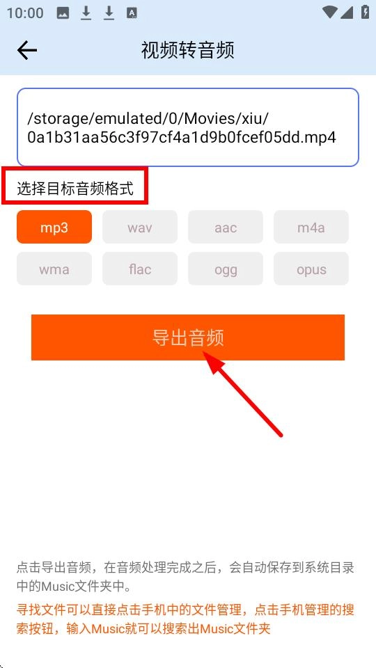 在【视频转音频】界面,您只需先选择好目标音频格式,接着点击【导出音频】按钮,就能顺利完成转换操作了。