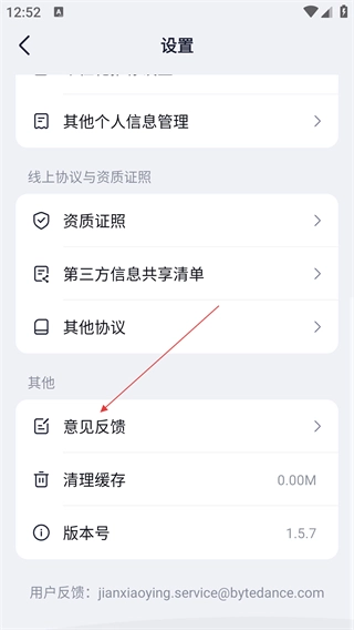 进入设置界面后,找到并点击【意见反馈】选项,即可进入反馈内容的编辑页面。