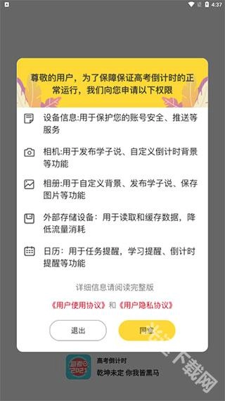 先安装高考倒计时软件,等安装完成后点击软件图标将其打开,接着阅读相关的协议内容,授予软件所需的手机权限,之后就能进入软件的首页了。